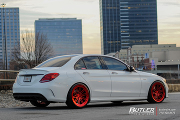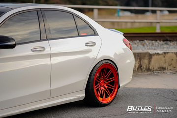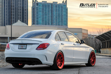 Mercedes C450 AMG with custom 20in Vossen LC-107 Wheels finished in exclusive Vossen Red finish wrapped in Michelin Pilot Super Sport Tires.